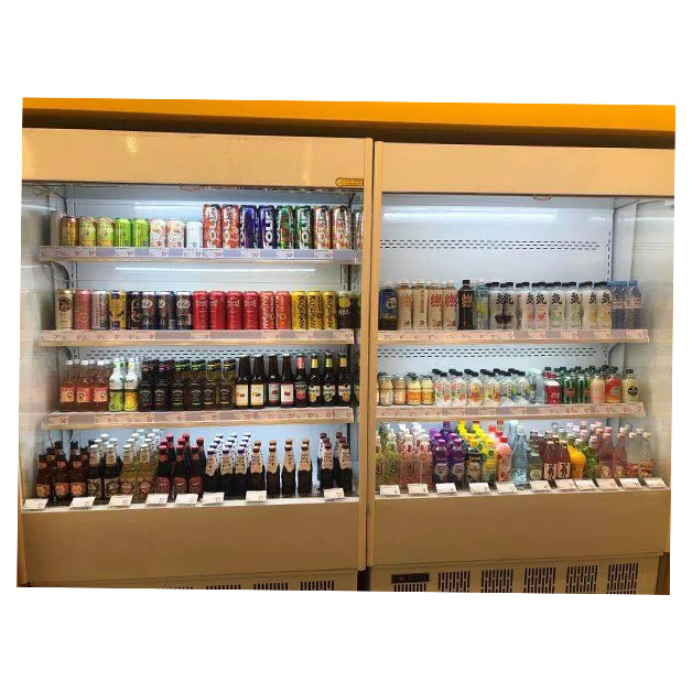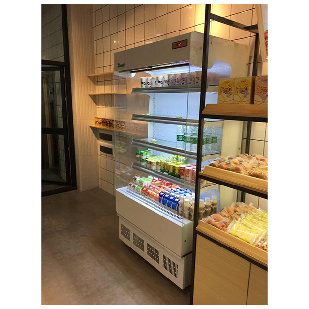 1. Открытые холодильные витрины, экономящие пространство, обычно используются в розничных торговых точках, таких как супермаркеты, магазины у дома и рынки свежих продуктов, для демонстрации и хранения охлажденных продуктов, включая напитки, йогурты, молочные продукты и вакуумно упакованное мясо.