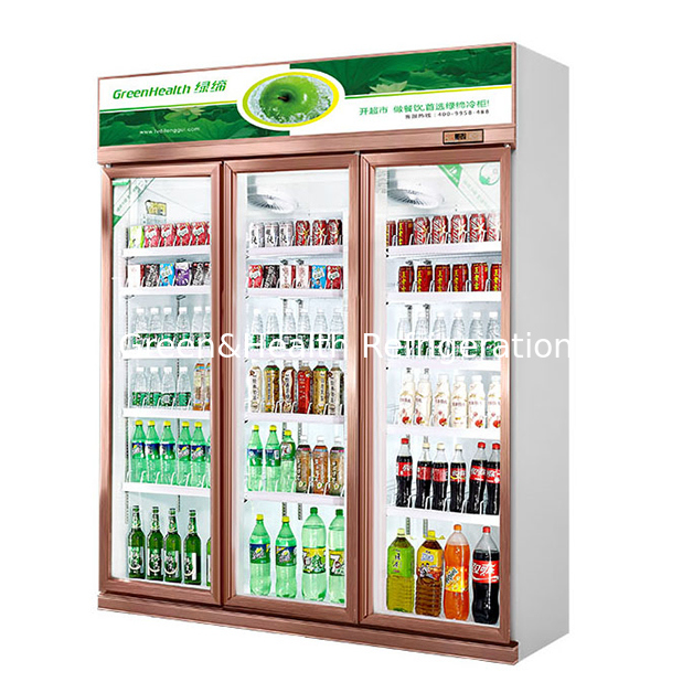Three Glass Doors Vertical Economy Beverage Refrigeration Display Freezer