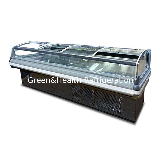 1Витрины с свежим мясом в европейском стиле отличаются изящным, современным дизайном, вдохновленным европейской эстетикой.с изогнутыми стеклянными панелями и минималистическими рамами, которые повышают визуальную привлекательность в розничных магазинах, одновременно максимизируя видимость продукта.
