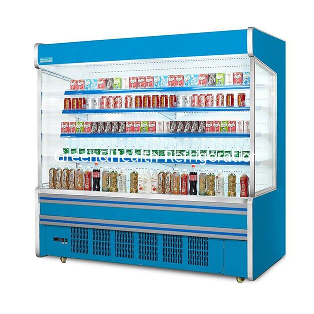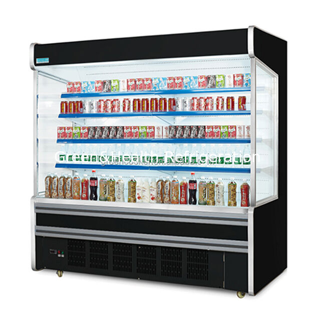1Внутренний шкаф с воздушными занавесками использует высокоскоростной воздушный поток для создания постоянного теплового барьера на открытом фронте.минимизация потерь холодного воздуха при одновременном предоставлении клиентам беспрепятственного и удобного доступа к продуктам.